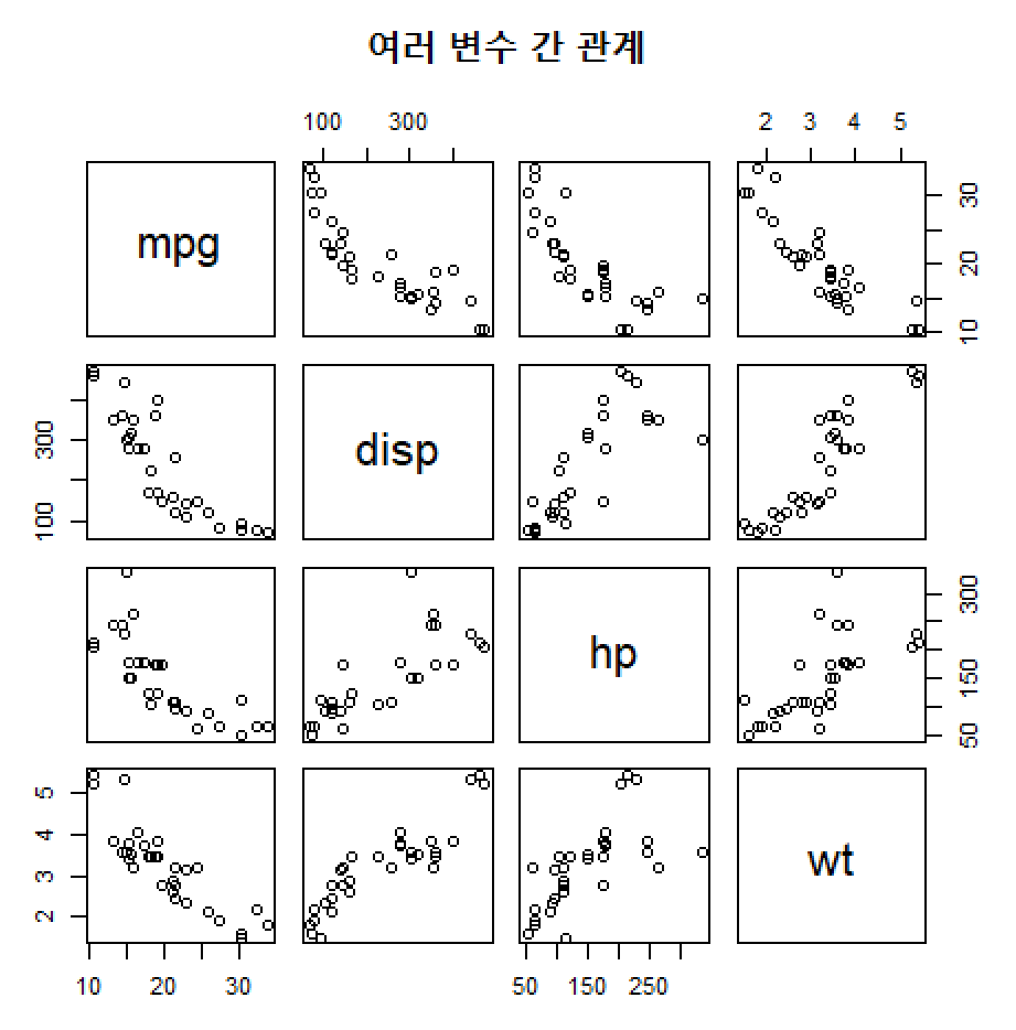 - mpg와 hp: -0.78 → 마력이 높을수록 연비가 낮다