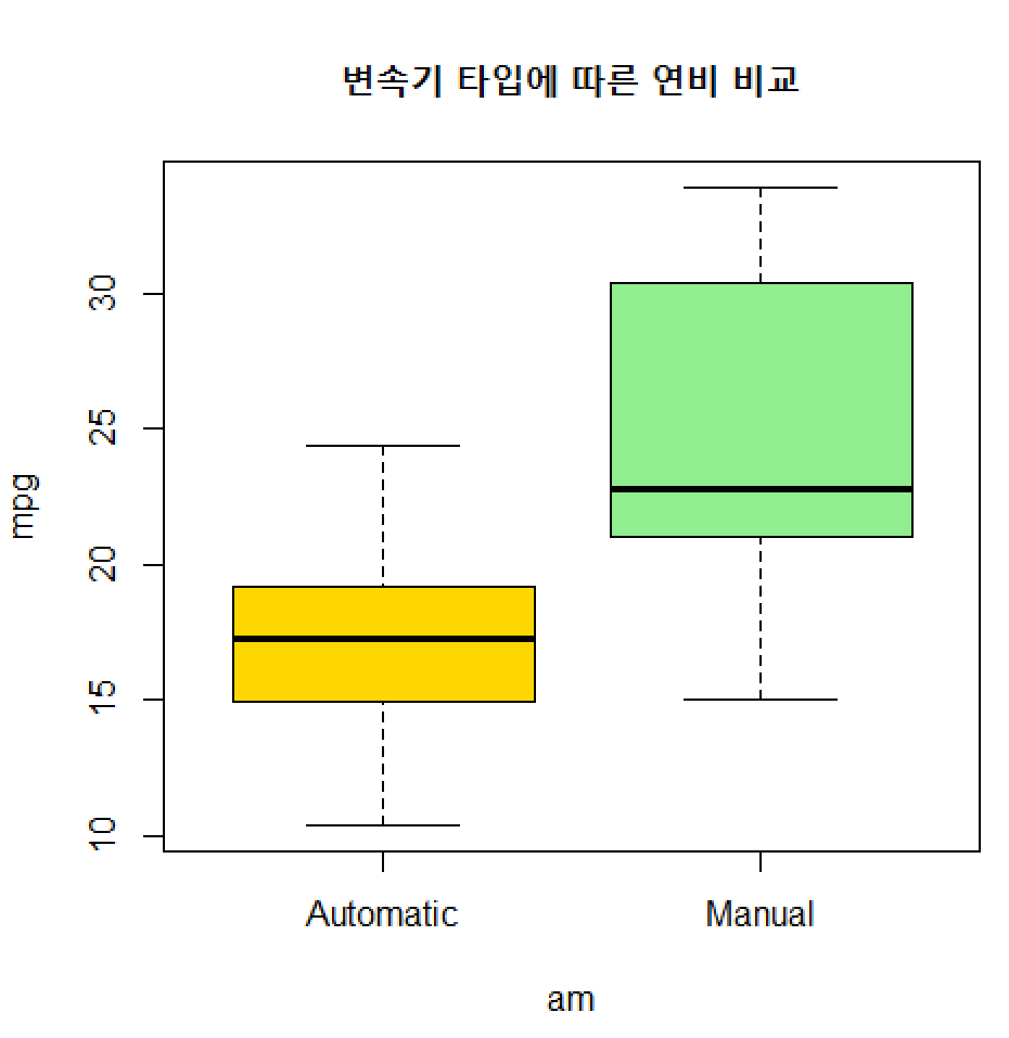 5️⃣ 범주형 변수 분석: 변속기(am)에 따른 연비 차이